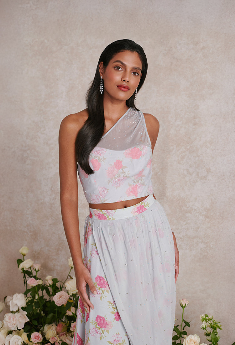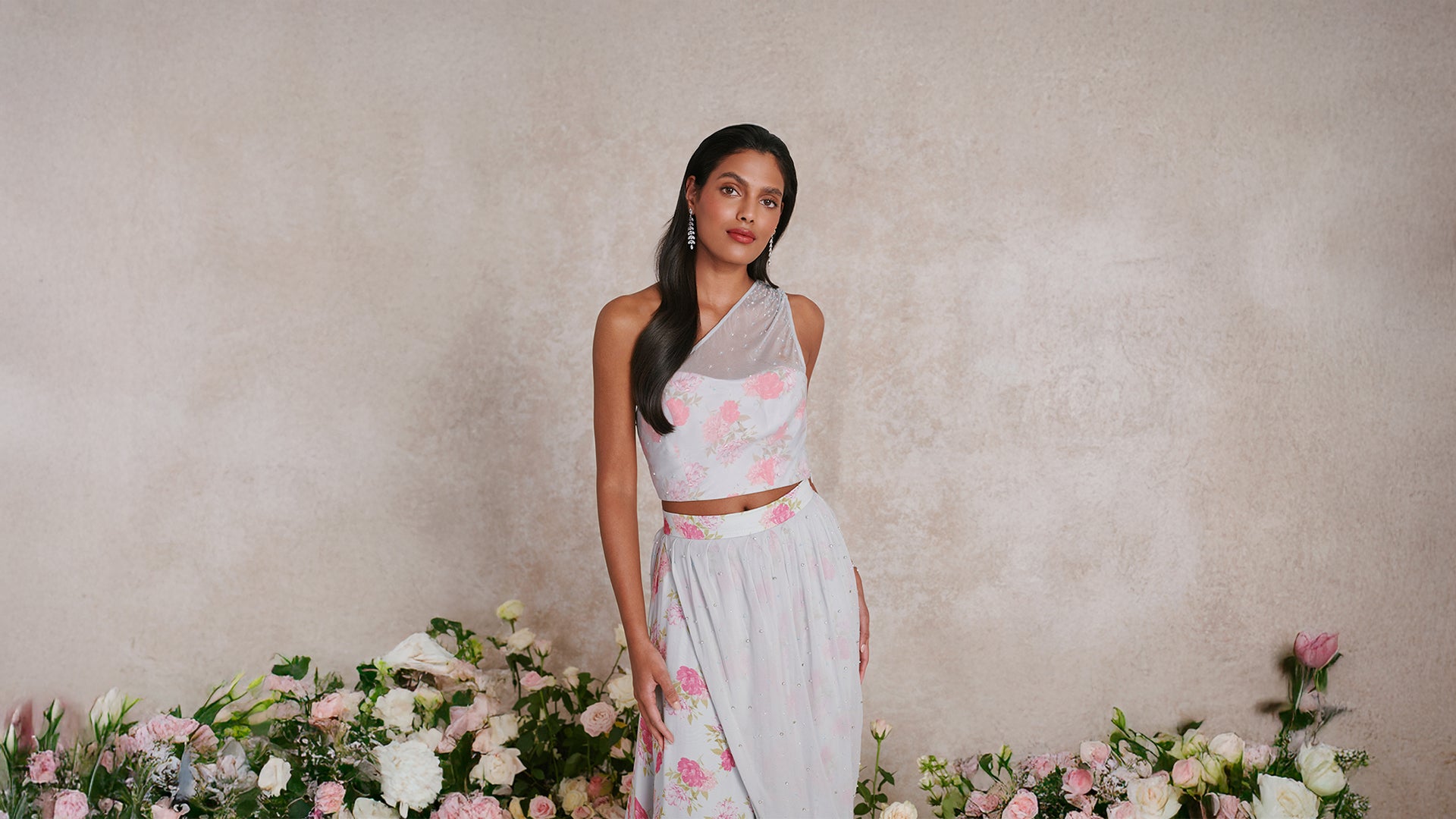 The Rekha Mistry launch collection takes influence from Indian and Western culture, amalgamating botanicals and florals from India and England. Using Jasmines and Peonies, vibrant and subtle colours.Β